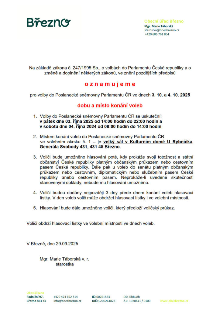 Email: starosta@obecbrezno.cz; mistostarosta@obecbrezno.cz