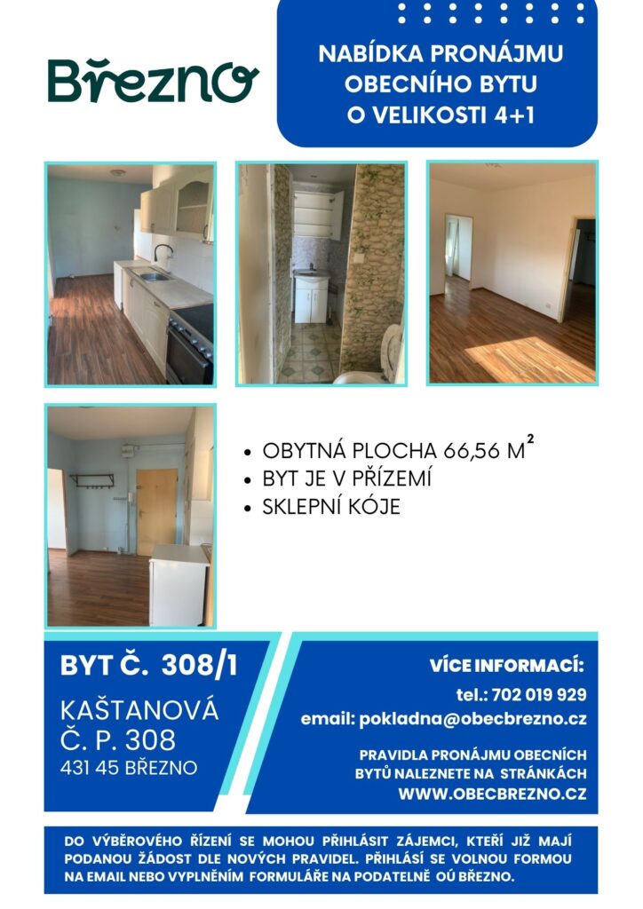 Záměr pronájmu obecního bytu – byt č. 308/1, Kaštanová
