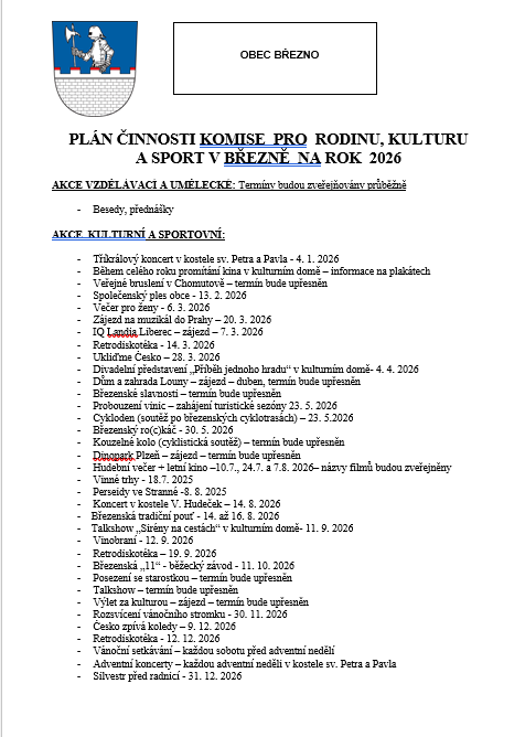 Kulturní kalendář obce 2026 a Plán kulturních akcí v roce 2026 🎭🎞🎡