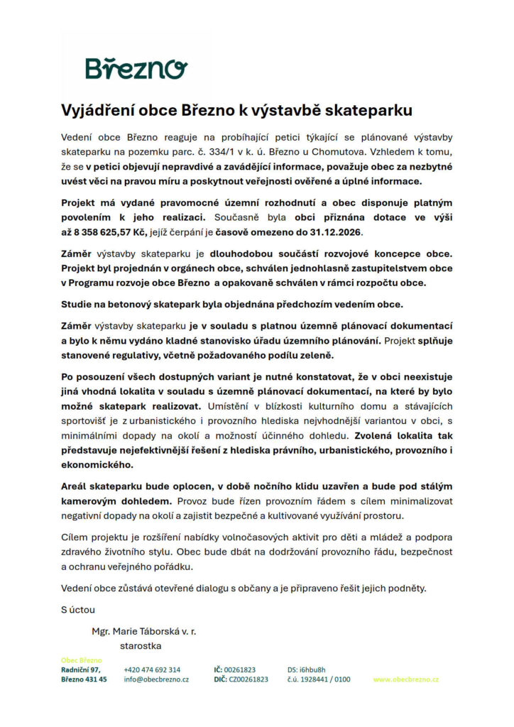 Email: starosta@obecbrezno.cz; mistostarosta@obecbrezno.cz